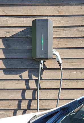 DT energi har installerat en Garo laddbox på ett företags garage. I denna variant av Garo laddboxen ingår det en fast kabel på 5m med typ2 handske. Laddströmmen reducerade vi till 13A så att överlast inte uppstår på fastighetens mätarsäkring. Detta kan ställas från 6A upp till 32A.